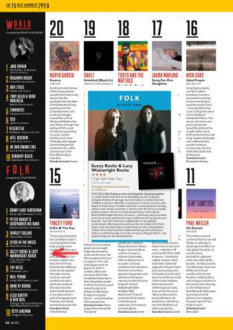 and is included in the magazine's Top 75 Albums of 2020. "...thoughtful, understated, affecting and quietly profound. Late night therapy for the downhearted".